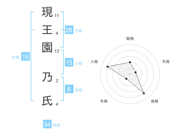 現王園 乃氏さんの総格は34画の2点!