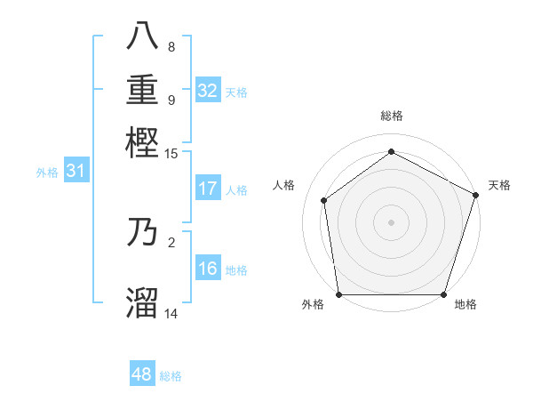 八重樫 乃溜さんの天格は32画の5点!