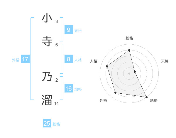 小寺 乃溜さんを姓名の画数から五運を鑑定