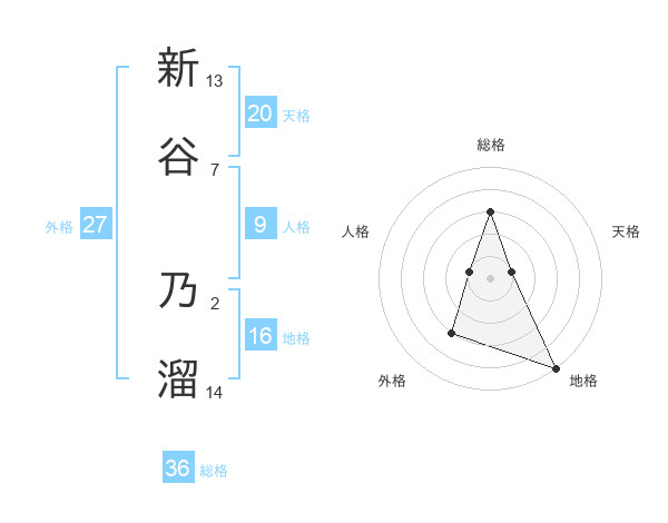 新谷 乃溜さんの外格は27画の3点!
