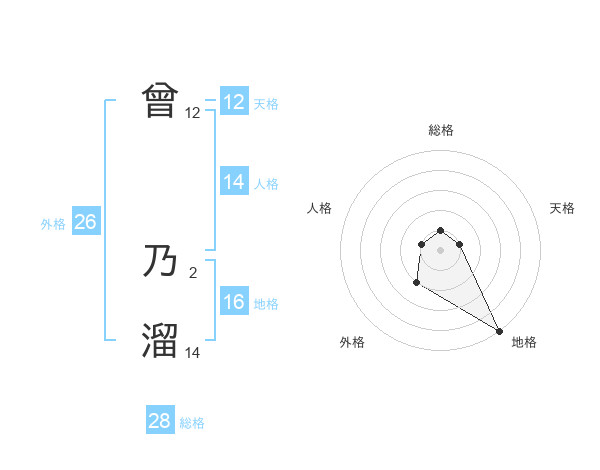 曾 乃溜さんの外格は26画の2点!