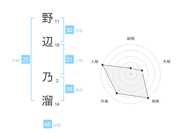 野辺 乃溜さんの天格は30画の2点!
