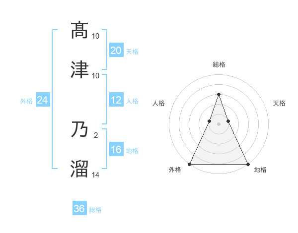 髙津 乃溜さんの外格は24画の5点!