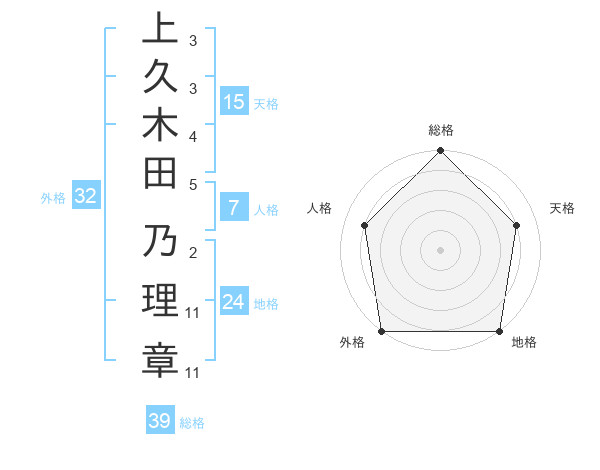 上久木田 乃理章さんを姓名の画数から五運を鑑定