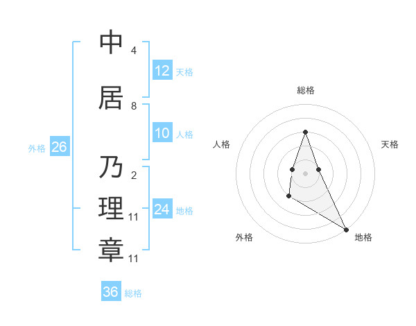 中居 乃理章さんを姓名の画数から五運を鑑定