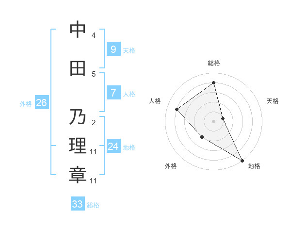 中田 乃理章さんを姓名の画数から五運を鑑定