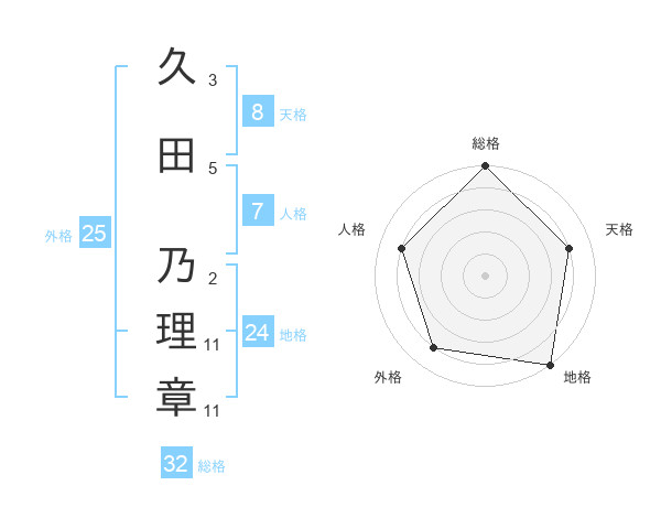 久田 乃理章さんの総格は32画の5点!