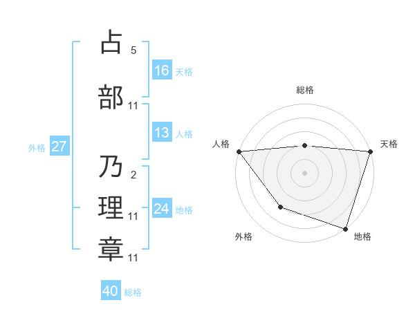 占部 乃理章さんを姓名の画数から五運を鑑定