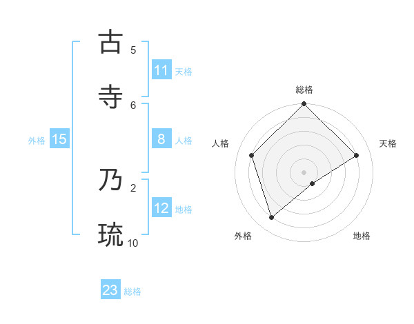 古寺 乃琉さんの総格は23画の5点!