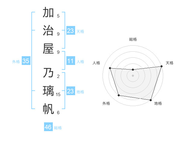 加治屋 乃璃帆さんの天格は23画の5点