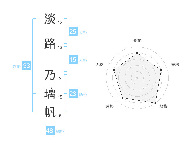 淡路 乃璃帆さんの総格は48画の4点!