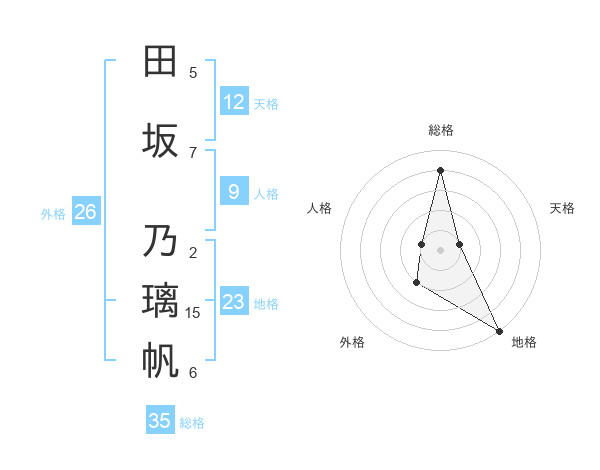 田坂 乃璃帆さんの地格は23画の5点!