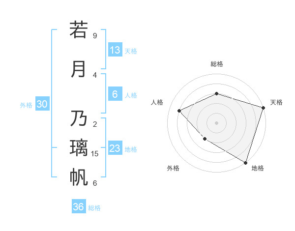 若月 乃璃帆さんの天格は13画の5点!