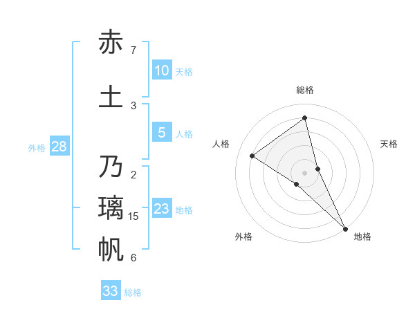 赤土 乃璃帆さんを姓名の画数から五運を鑑定