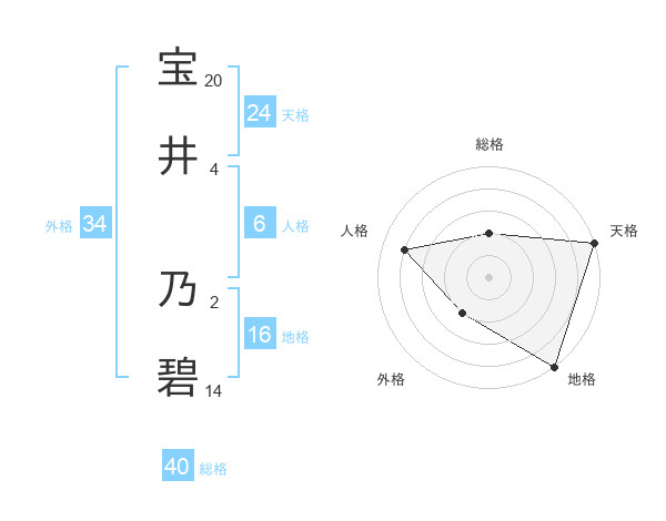 宝井 乃碧さんの天格は24画の5点!