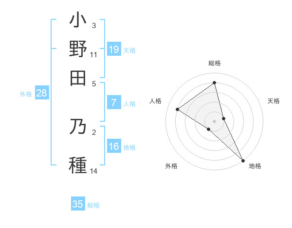 小野田 乃種さんを姓名の画数から五運を鑑定
