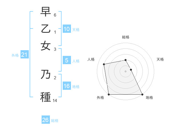 早乙女 乃種さんを姓名の画数から五運を鑑定