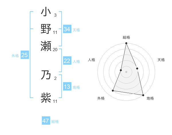 小野瀬 乃紫さんを姓名の画数から五運を鑑定