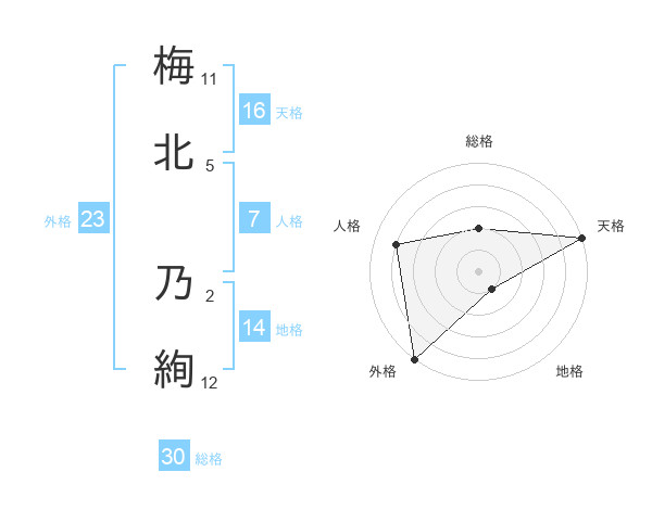 梅北 乃絢さんの外格は23画の5点!