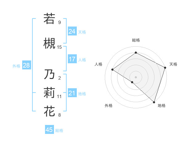 若槻 乃莉花さんを姓名の画数から五運を鑑定