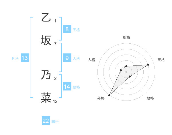 乙坂 乃菜さんの総格は22画の1点!