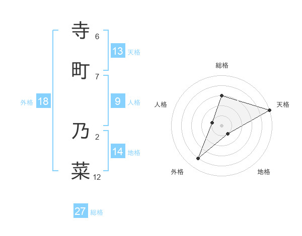 寺町 乃菜さんの天格は13画の5点!