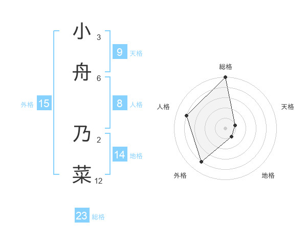 小舟 乃菜さんを姓名の画数から五運を鑑定