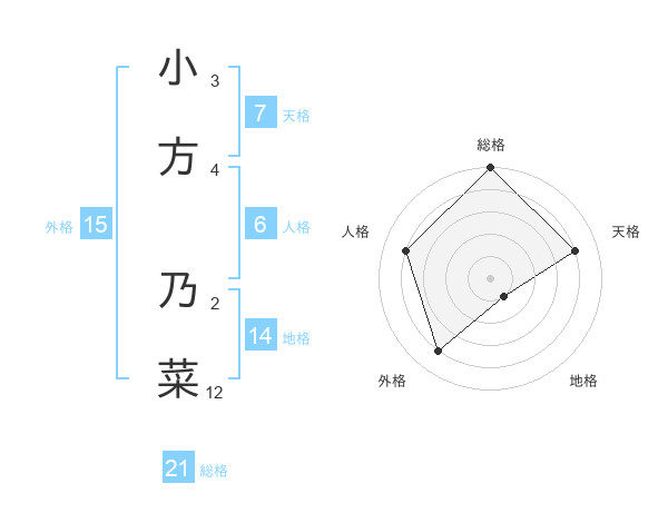 小方 乃菜さんの総格は21画の5点