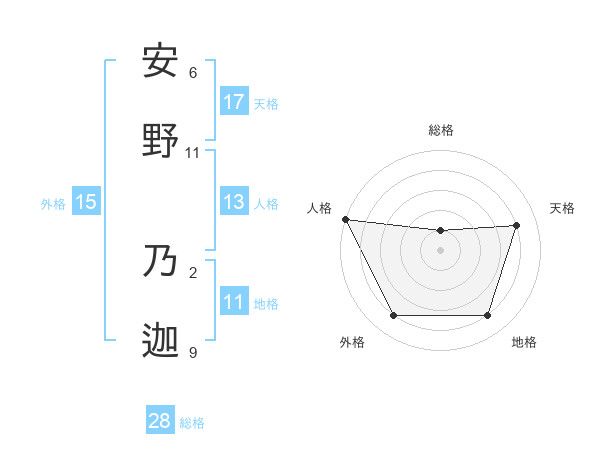 安野 乃迦さんを姓名の画数から五運を鑑定