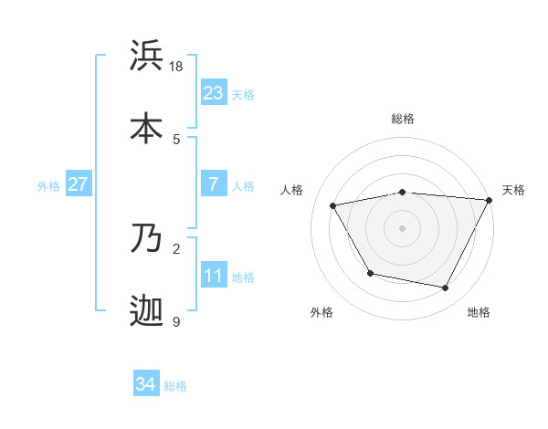 浜本 乃迦さんを姓名の画数から五運を鑑定