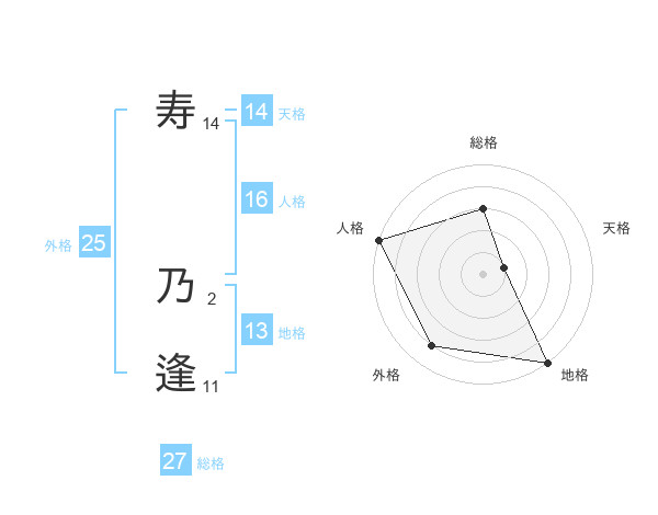 寿 乃逢さんの総格は27画の3点!