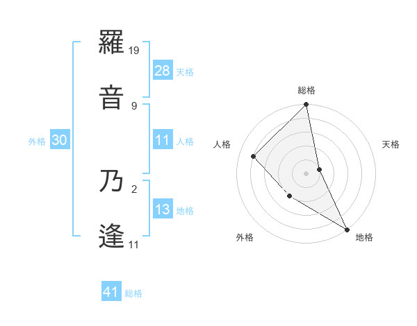 羅音 乃逢さんの総格は41画の5点!