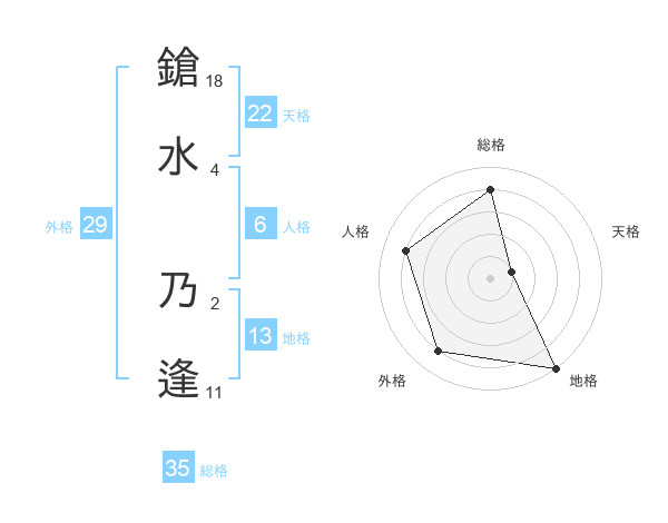 鎗水 乃逢さんを姓名の画数から五運を鑑定