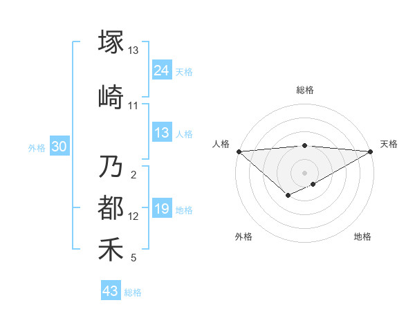 塚崎 乃都禾さんの天格は24画の5点!