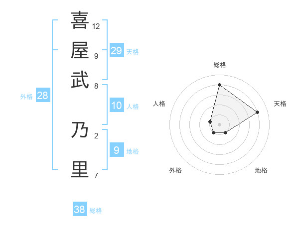 喜屋武 乃里さんを姓名の画数から五運を鑑定