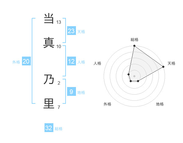 当真 乃里さんの天格は23画の5点!