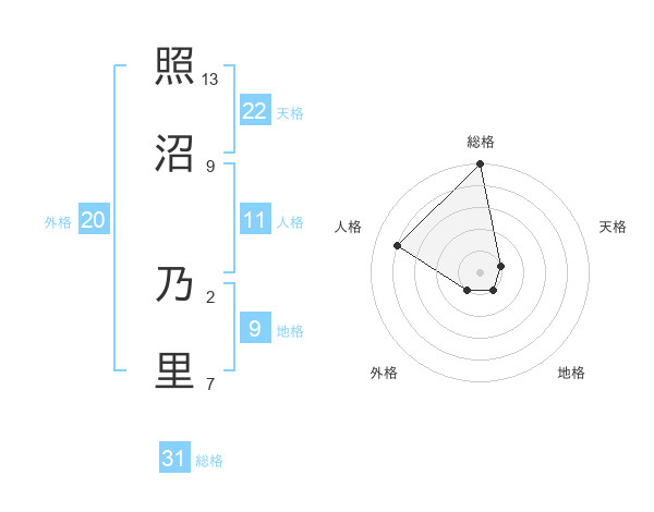 照沼 乃里さんを姓名の画数から五運を鑑定