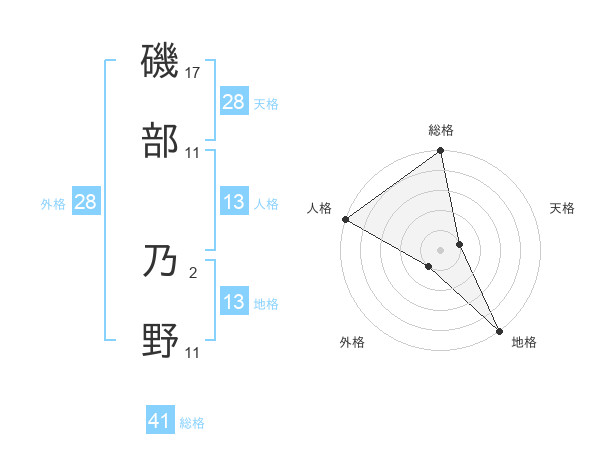 磯部 乃野さんを姓名の画数から五運を鑑定