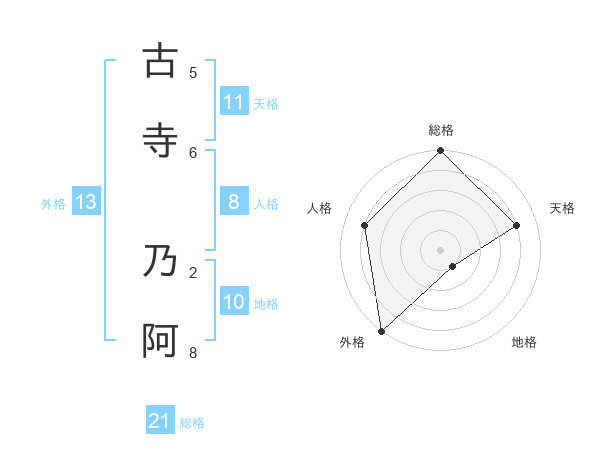 古寺 乃阿さんの総格は21画の5点!