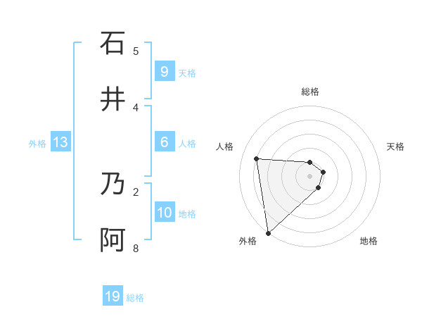 石井 乃阿さんを姓名の画数から五運を鑑定