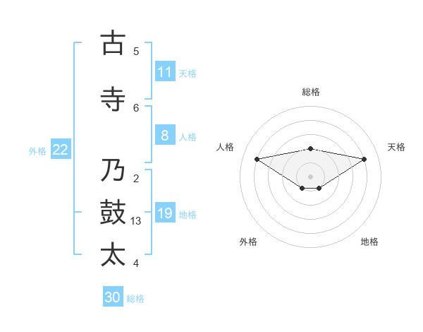 古寺 乃鼓太さんを姓名の画数から五運を鑑定