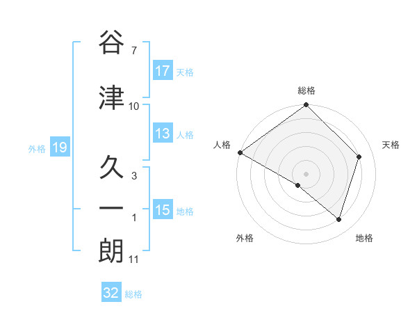 谷津 久一朗さんの総格は32画の5点!