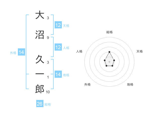 大沼 久一郎さんを姓名の画数から五運を鑑定