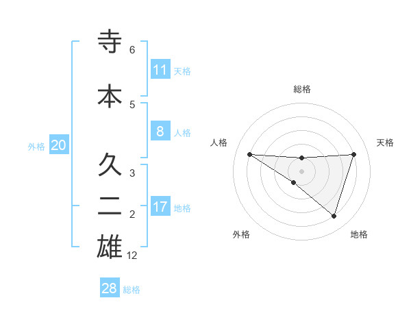 寺本 久二雄さんを姓名の画数から五運を鑑定
