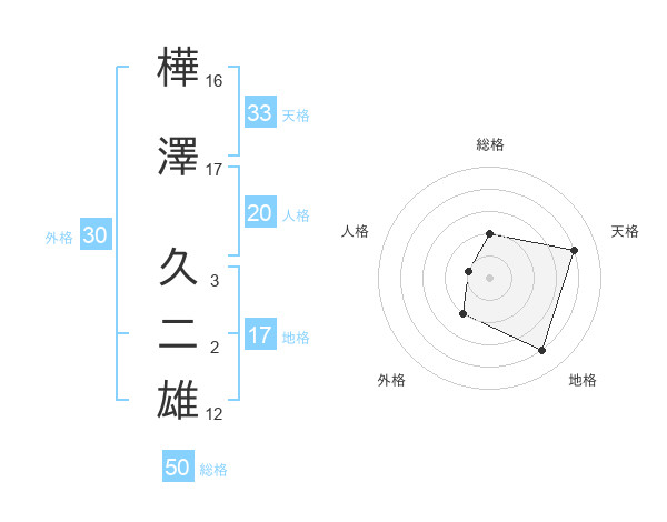 樺澤 久二雄さんを姓名の画数から五運を鑑定