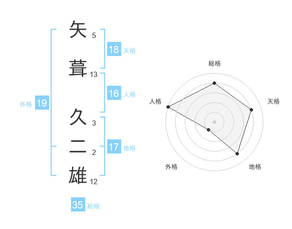 矢葺 久二雄さんを姓名の画数から五運を鑑定