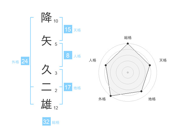 降矢 久二雄さんの総格は32画の5点!