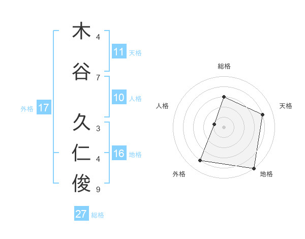 木谷 久仁俊さんの総格は27画の3点!