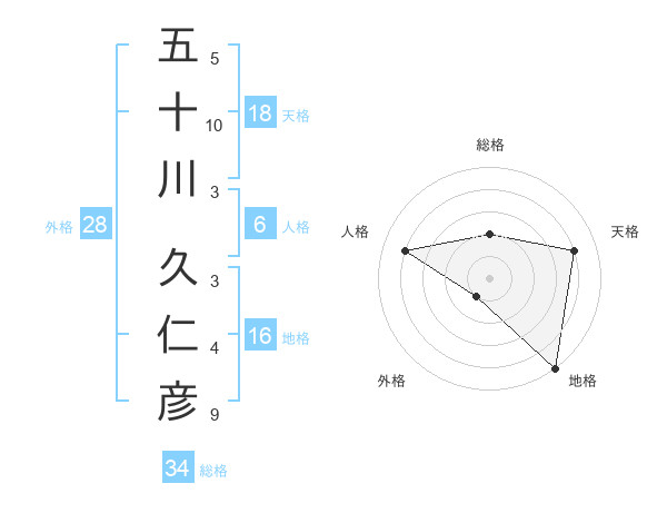 五十川 久仁彦さんを姓名の画数から五運を鑑定