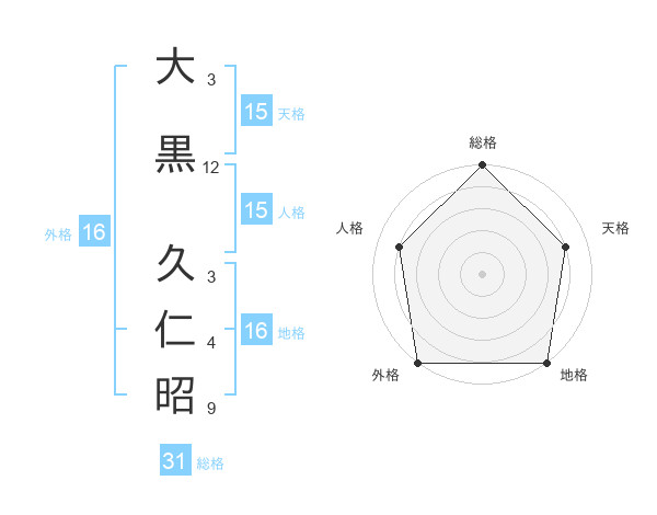 大黒 久仁昭さんを姓名の画数から五運を鑑定